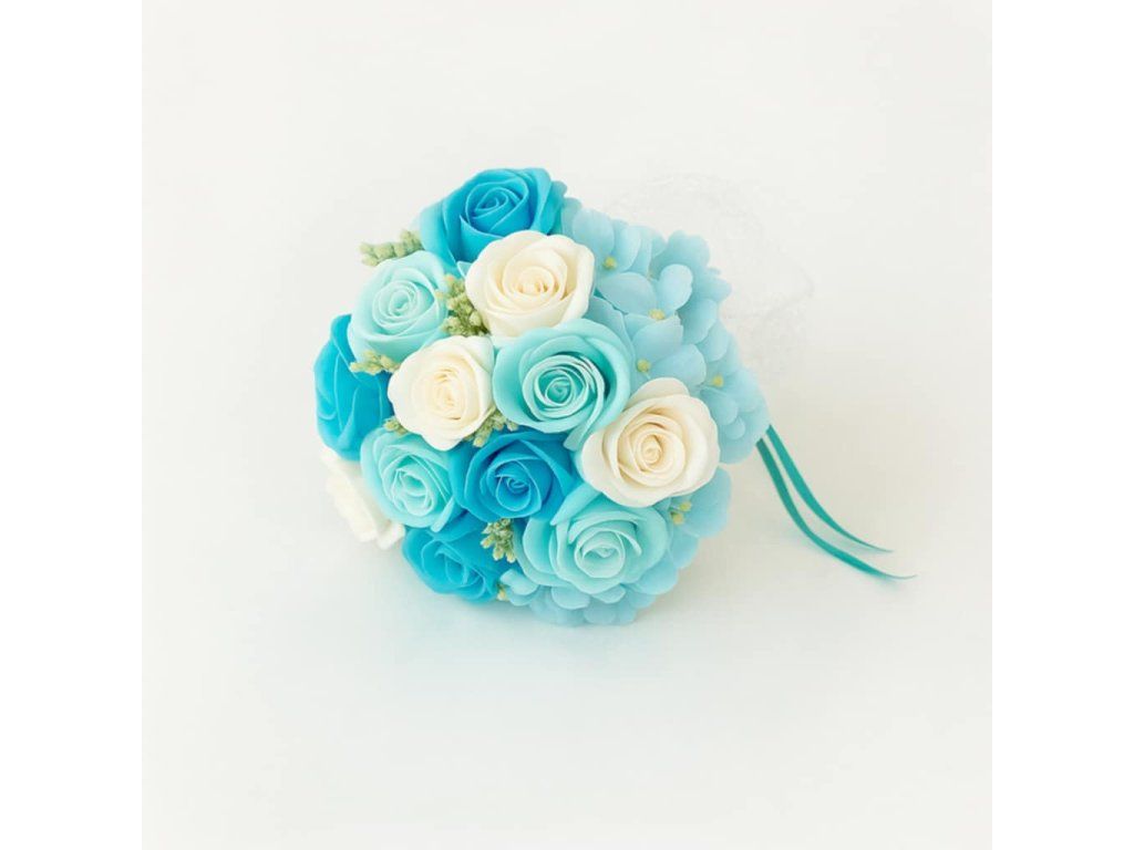 Luxusní kytice v kombinaci tyrkysové a bílé působí slavnostně, ale zároveň univerzálně – jako dárek, pro nevěstu i družičku. Jemná parfemace originálním francouzským parfémem dodává květinám kouzelnou atmosféru a vytváří pocit výjimečnosti.